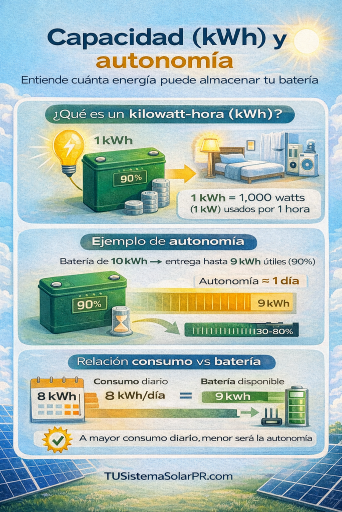 Baterias de Litio Residenciales https://www.tusistemasolarpr.com/baterias-de-litio-residenciales/ https://www.tusistemasolarpr.com/baterias-de-litio-residenciales/#respond Sun, 12 Oct 2025 15:14:05 +0000 https://www.tusistemasolarpr.com/?p=1315 🔋 Baterías de Litio para Sistemas Solares Residenciales Energía inteligente, duradera y eficiente para tu hogar Las baterías de litio se han convertido en el corazón de los sistemas solares modernos. A diferencia de las antiguas baterías de plomo-ácido, las de litio ofrecen mayor eficiencia, más ciclos de vida útil y un mantenimiento casi nulo, […]