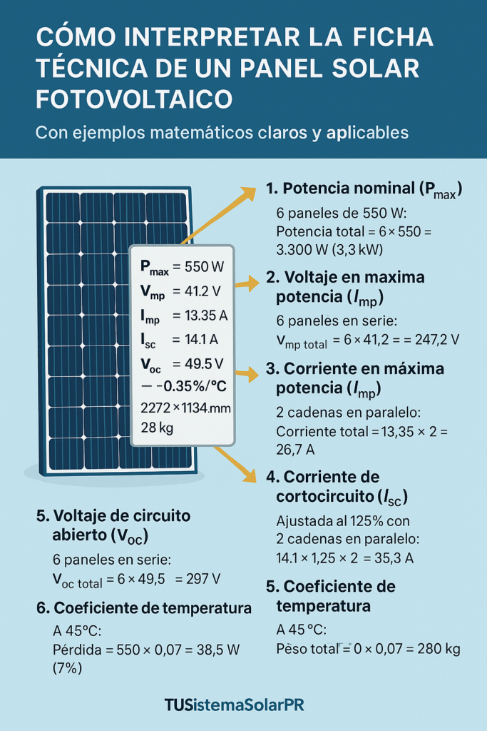 Para un panel de 550 W:550×0.07=38.5 W550 \times 0.07 = 38.5\ W550×0.07=38.5 W Potencia real511.5 WPotencia\ real ≈ 511.5\ WPotencia real≈511.5 W